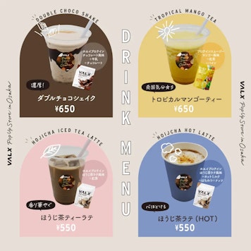 人気フレーバーから数量限定フレーバーまで、VALXプロテインを使ったこだわりの特別アレンジドリンクをその場でお楽しみいただけます。
