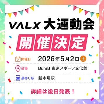 皆様と直接つながり、共に楽しめるイベントの1つである「VALX大運動会」を、2026年5月2日(土)に BumB 東京スポーツ文化館 にて開催予定です。